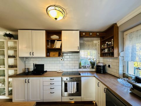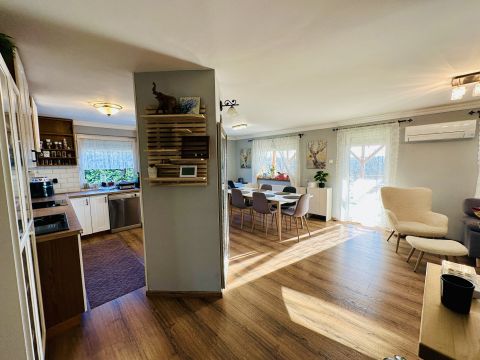 A ház tágas, világos terekkel rendelkezik, a nappaliból pedig egy hangulatos, panorámás terasz nyílik, amely tökéletes helyszíne lehet pihenésnek vagy baráti, családi összejöveteleknek.